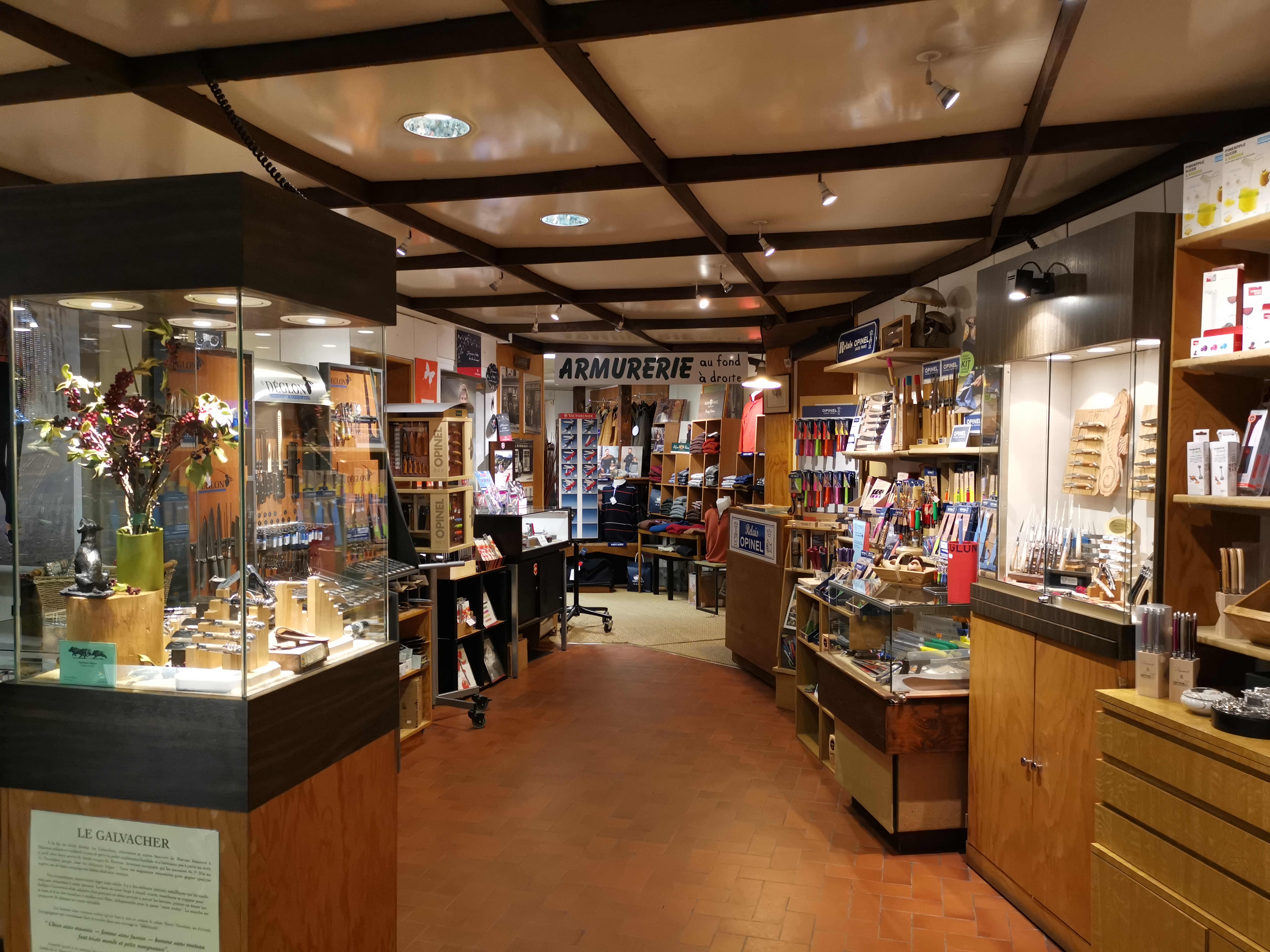 Ce magasin est une véritable caverne d’Alibaba. A l’origine une coutellerie et maintenant un vaste panel d’articles : du couteau OPINEL au couteau de collection en passant bien sûr par le Galvacher qui est la marque de la maison. Puis les innombrables articles de cuisine qui combleront les souhaits de chacun. Les vêtements pour dames et pour hommes pour la chasse sont également nombreux et plusieurs marques y sont représentées. Enfin le principal est le département de l’armurerie avec la vente et la réparation des armes que l’on peut trouver en neuf comme en occasion. Pauline parvient à découvrir de véritables trésors en armes exceptionnelles dont j’ai eu la chance de pouvoir profiter. N’hésitez pas à découvrir cette armurerie ancienne qui a une véritable âme, que ce soit comme curieux ou comme acheteur vous y serez toujours bien reçu et avec le sourire. La compétence et l’accueil y sont de rigueur.